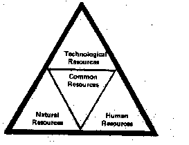 Natural resources involve the claiming, harnessing and developing of the earth's environmental products. An example of holding natural resources is the proper care of soil for growing crops by cultivating, rotating and fertilizing. Human resources are the sum total of human energy and ability which can be employed in the corporate task of sustaining life. For example, prairie Indian families divide themselves into task forces, such as food gatherers and rug weavers; each of which requires some particular skill. Technological resources organize the accumulated scientific and industrial methods and allow for the invention of new methods. An illustration of this process is seen in computer technology which has radically changed the basic operation of farm and industry, improved control of manufacturing processes, and multiplied the possibilities for innovation. The process of common resources provide the basic materials for economic commonality. Common resources set the potential pattern for common production. In relation to common distribution, common resources generate the distributive system, set the distribution levels, and nurture the distribution mechanisms. An illustration of this dynamic is: in order for every person in Borneo to have a quarter of a pound of rice daily, the use of land, seed, fertilizer, labor and methods of harvesting, as well as storage and marketing, are required.