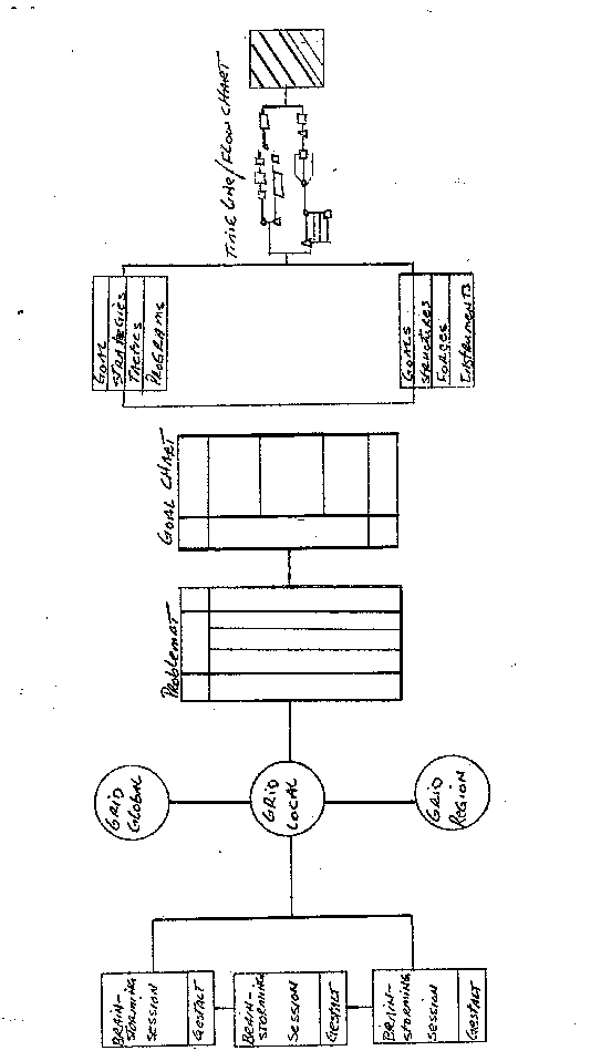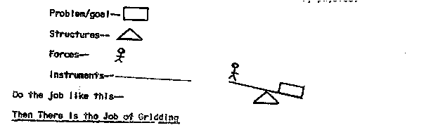 44. Grids are both actual and symbolic. That is, a grid of a community represents the salient facts about who lives where, how, and how they are divided up. What salient facts are presented depends upon the purpose for which the grid is made and the insights of the gridmaker. A conventiona1 zoning map is really a grid based upon typos of housing available, and the separation between residential, commercial and industrial areas. A community planner will be more interested in the flow of traffic through the community; what places regularly attract people, what areas do they avoid, what streets and "short cuts" do people use and why? When one has designed a grid, it should tells him' roughly what his community looks 1ike and where the things are located that are import ant to him for his purposes.