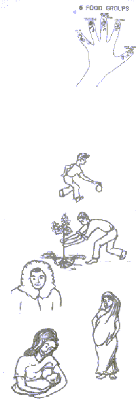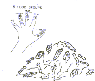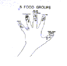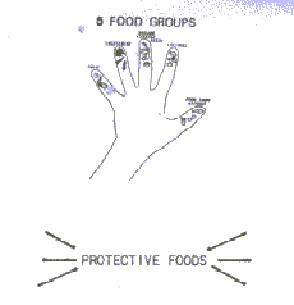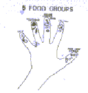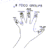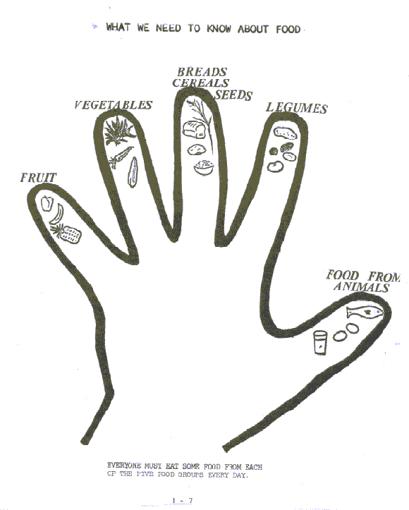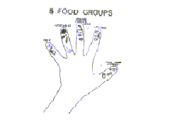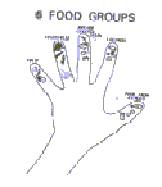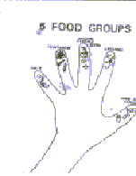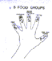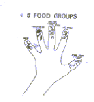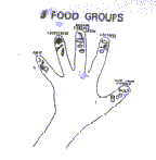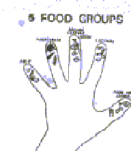 a hand makes it easy to remember the five food groups. It Is easy for mothers