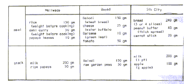 portion from each of the 5 food groups. The foods are given as a snack