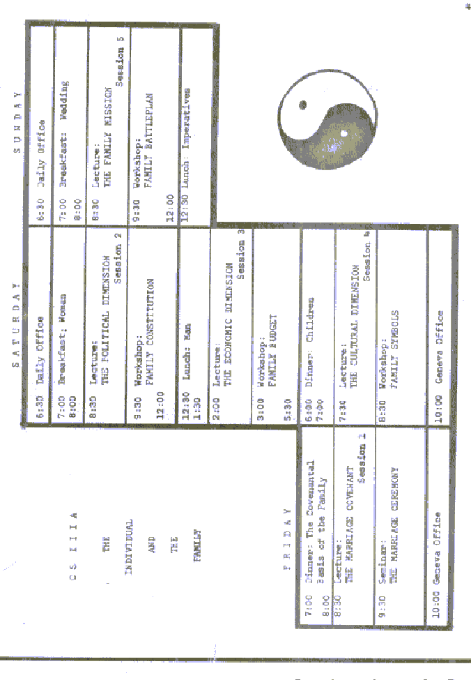 IV. Seminars and Sessions 1. Marriage Covenant 2. Political Workshop 3. Economic Workshop 4. Cultural Workshop