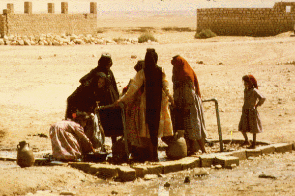 An ancient farming community that dates back to the days of the Pharoahs, Bayad stands between the great Eastern Desert and a strip of arable land barely a kilometer wide. The villagers still use the agricultural tools and methods of their ancestors, though new a pumping station lifts the Nile water into a long canal for irrigating farmed land. Women, draped in black, walk erectly along dusty paths from the canal to the village, a distance of one-half kilometer, with water jugs balanced gracefully on their heads. From the same canal that quenches Bayad's thirst comes the water that provides a cooling place for people and animals to bathe.