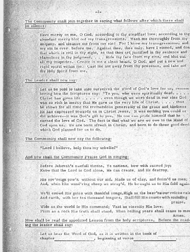 Community. AND UPON OUR RELIGIOUS COMMUNITIES WE ASK THY BLESSING. REMEMBER ESPECIALLY IN THY INFINITE MERCY ALL MEN OF' OTHER FAITHS AND RELIGIOUS PERSUASIONS.