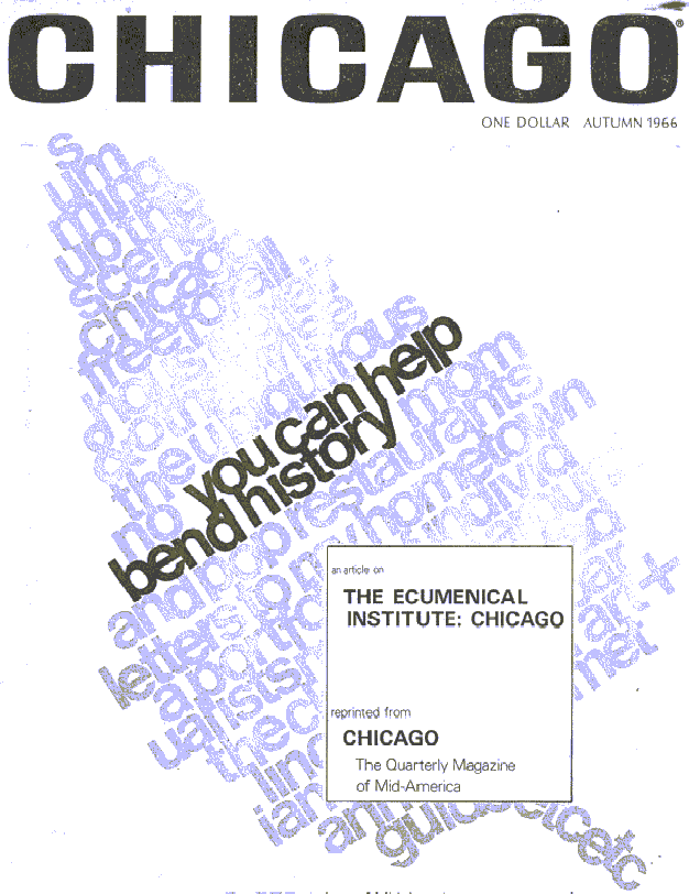 The Ecumenical Institute, which was set up by the Church Federation in 1957, is located in an old seminary at 3444 West Congress Street. Actually it is neither seminary nor mission society nor settlement house (though it has aspects of all three). "We are," says one of the staff, "a laboratory for the church. You might compare us to the research center of the Ford Motor Company or the Jewel Tea. We are searching for programs and testing projects that will update the church and prepare it for the