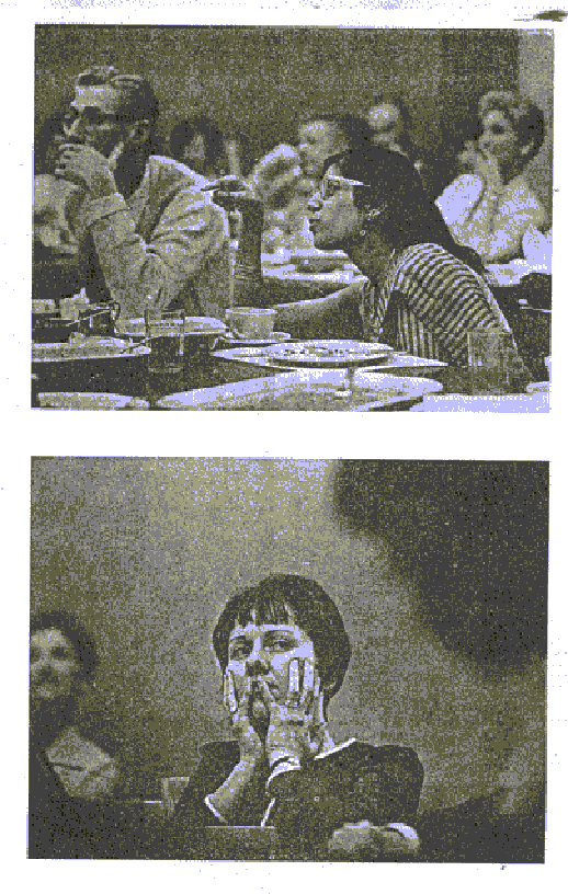 There is a syncopated clapping of hands. Then a chorus of voices shout, "Food is good!" An answering chorus sings out,"Right."Then,"Life is good!" Again, a fullbodied, "Right." Finally, "All is good!" and everyone yells: "It's O.K."
