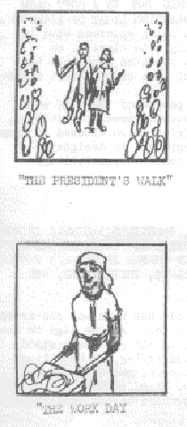 THE UNEXPIAINABLE GLUE WHICH HOLDS COMMUNITY TOGETHER IS A POWER KNOWN SIMPLY AS PRESENCE WHICH DISTURBS COMPLACENCY AND ELICITS A KEEN SENSITIVITY TO LIFE. In E1 Bayad, a moment of realization occurred when the local residents saw that they had accomplished miracles in their community project. They summed this up in a play poking fun at the outside staff who helped them: Act I: "Who are these people? Perhaps they are Israelies come to take over Let's see." Act II:"These people are wonderful; look what they have done for us." Act III: "But wait, we dug the well, we made the bricks, we did the butcher's boards and newspaper. We are the ones who are wonderful" |
