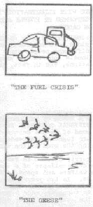 COMMUNITY IS LIKE A PIECE OF CLOTH WITH THOUSANDS OF STRANDS J0INED TOGETHER. In Vogar the run down houses are strung out separated and concealed from one another by poplar trees. The people knew they were bound together, yet they had no way to express this or act it out. Finally, they hit upon an ordinary sight, of the geese flying together. This simple, but deeply rooted image, became the vehicle to express their resolve to work together for Vogar's future. |