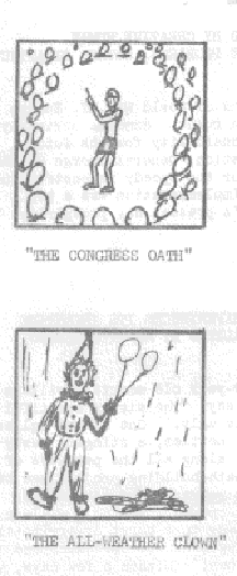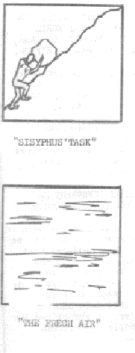 IN LOCAL COMMUNITIES SIMPLE SIGNS HAVE SHOWN THAT LIFE CAN BE LIVED THROUGH ALL WEATHERS AND THAT THERE ARE NO PROBLEMS. The Kreuzberg 0st Guild prepared a celebration for the community. On the appointed day, it rained and was very cold. To overcome the obvious contradiction, a guild member put on a green wig, grease paint, a red nose, old clothes and long underwear and spent the morning on the street as a clown sideshow barker. People stopped and asked what was happening and were drawn into the celebration by this new form, of the Pied Piper. They saw celebration was for all seasons, not just for fair weather. |