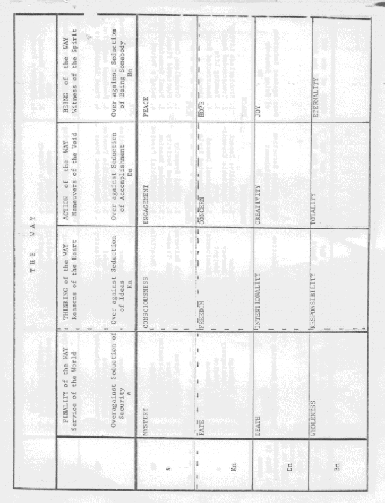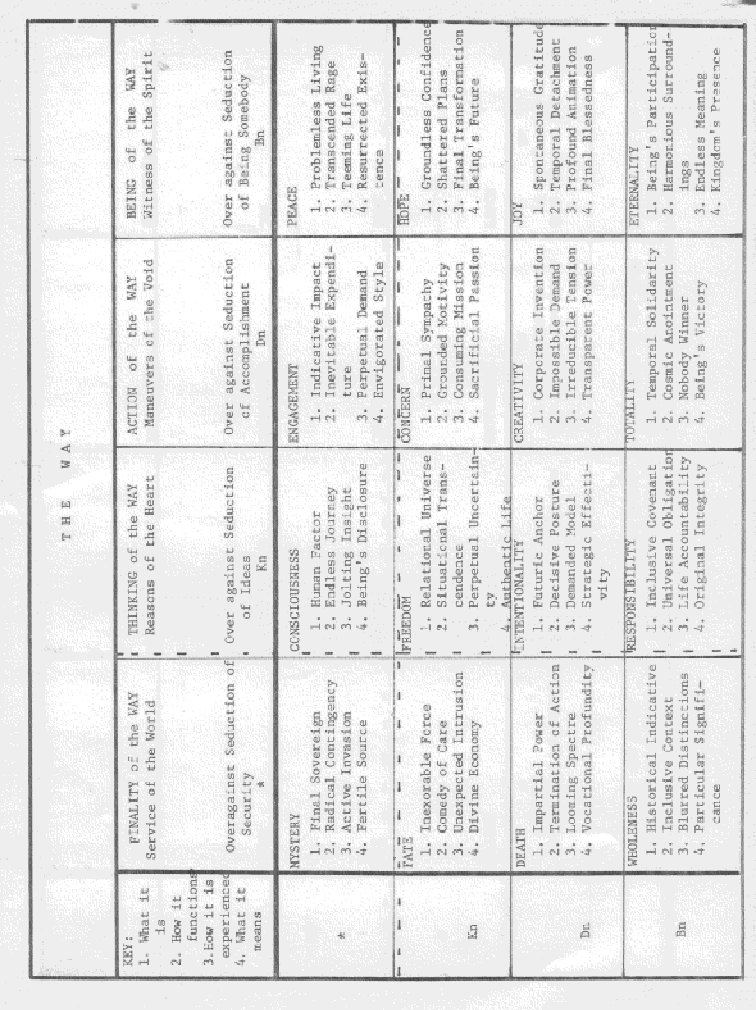 "The Way" is the name for this X dimension, the human factor, that is the common experience of mankind. It is the name for that which accounts for the success of our methods-and we've all had the experience of seeing terrible pedagogy and sloppy procedures still work wonders. That X factor-the Way-is irresistible. It is painful. It is awesome. It always wins. It is God making his way through history. It is the profoundest level of life. It is the pearl of great price that is yet available to (and some would say most abundant among) the wretched of the earth. It is what has kept us going this year and what lures us into a future full, so far as I can see, of even more intense criticism, frustration, and even boredom. That's what we're after in these talks, not some novel or cute gimmick to titillate our gizzards into doing more of the same. In fact the Way promises only to redo our gizzards and to wipe us out. It is not a Way of prominence or reward. It is the Way of authenticity-authenticity of one brief life on one small planet.