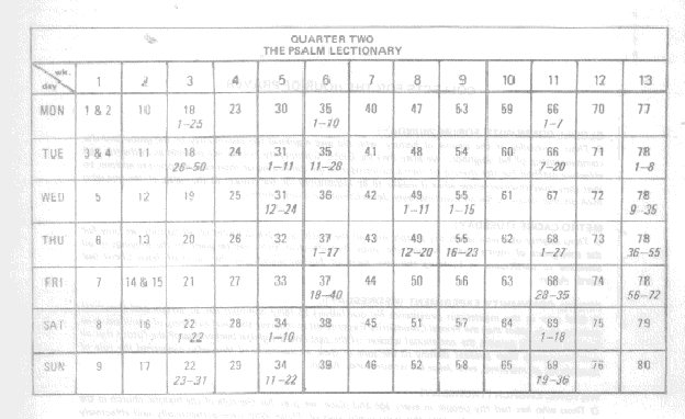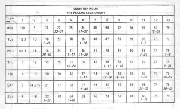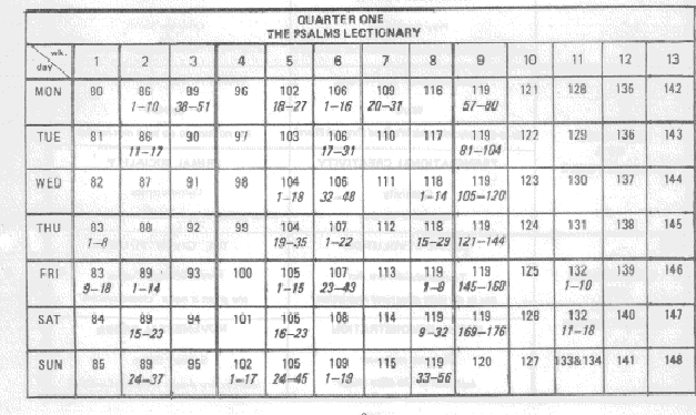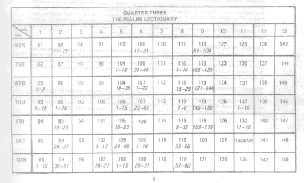 Psalms Lectionary . . . . . . . . . . . . . . . . . . . . . . . . . . . . . . . . . . . . . . . . . . . . . . . . 8