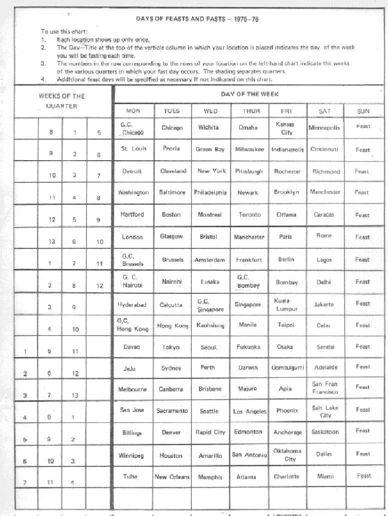 Days of Feasts and Fasts . . . . . . . . . . . . . . . . . . .