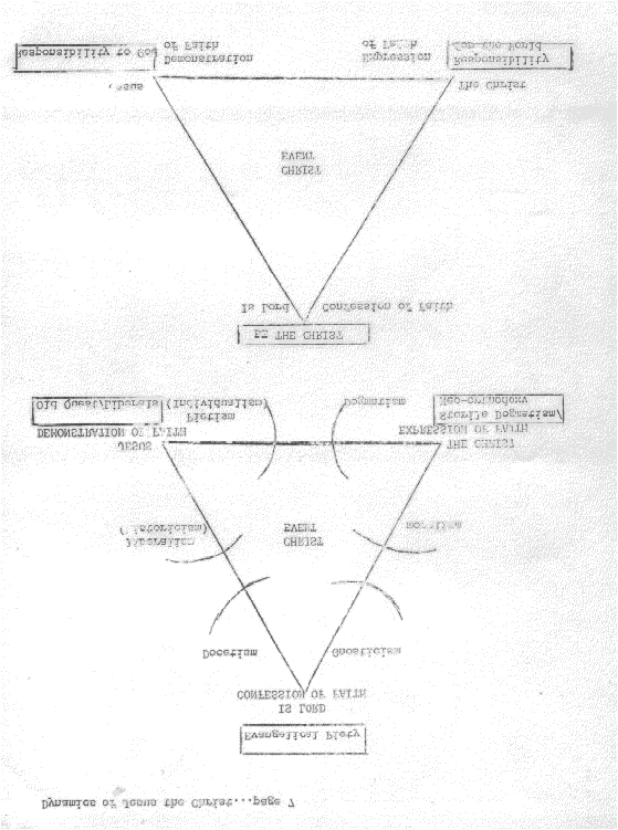 30. That's essentially where Gogarten gets to in chapter 5 and now I want to just take a few minutes here to spin off of that a little bit. And let's just begin for a second with Jesus, the Christ, is Lord. (See top triangle on the next page.) In Jesus you have the demonstration of faith, and in the Christ, the expression of faith, and in the Lord you have the confession of faith.