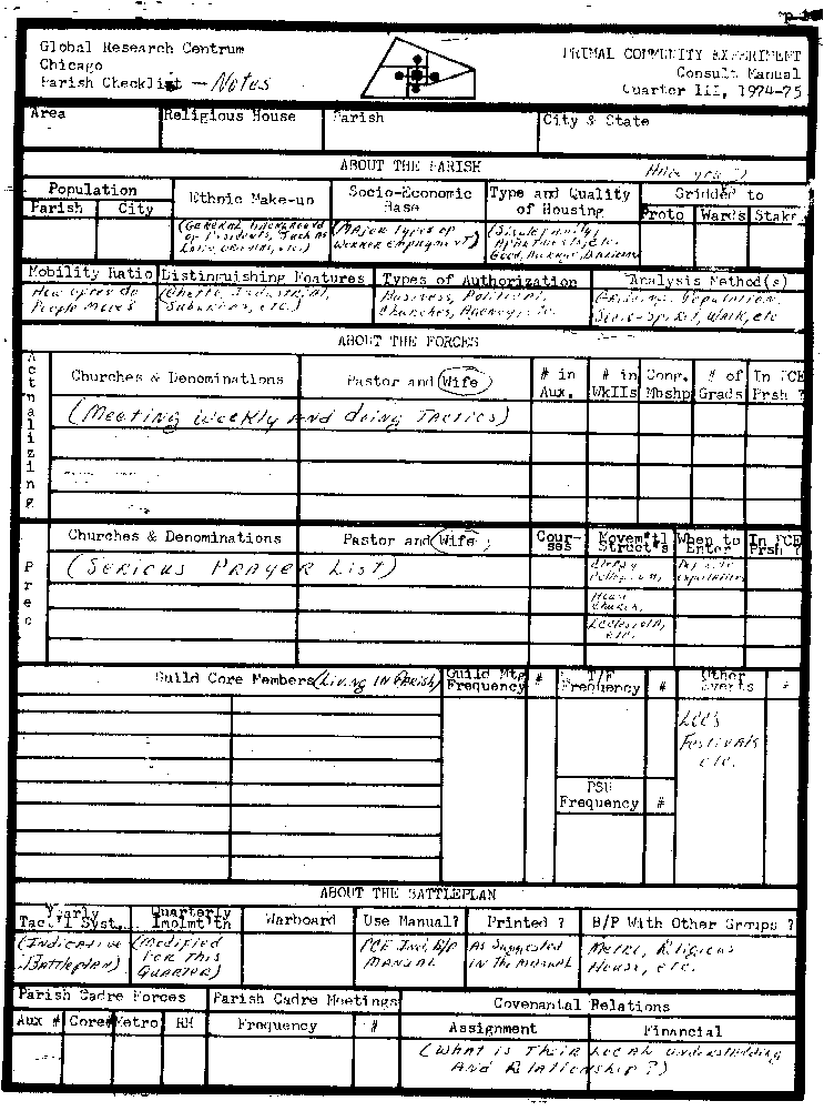 style but nonetheless get concrete, specific answers. Distribute copiea to all who are present. Complete one Checklist for ea~h Parish. Caution: Avoid discus sing issues relative to the items. The following workshop deals with them.