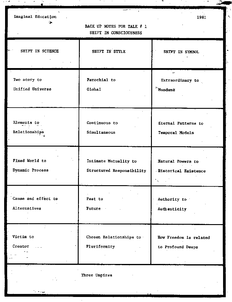 If you use these methods in several situations you begin to see how they help to determine the appropriateness of your activity. In conversations, it is a method for rationally thinking through the necessary steps to cover in a conversation. In Contradictions, it enables you to see the revolutionary principles you operate out of, the principles you give up and the bold stance that exists in each option. In writings, it clarifies your sequence of thought and provides the existential bite. In Events, it gives you a method to recall the happenings