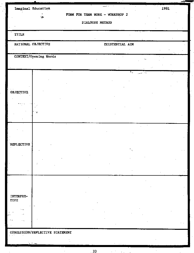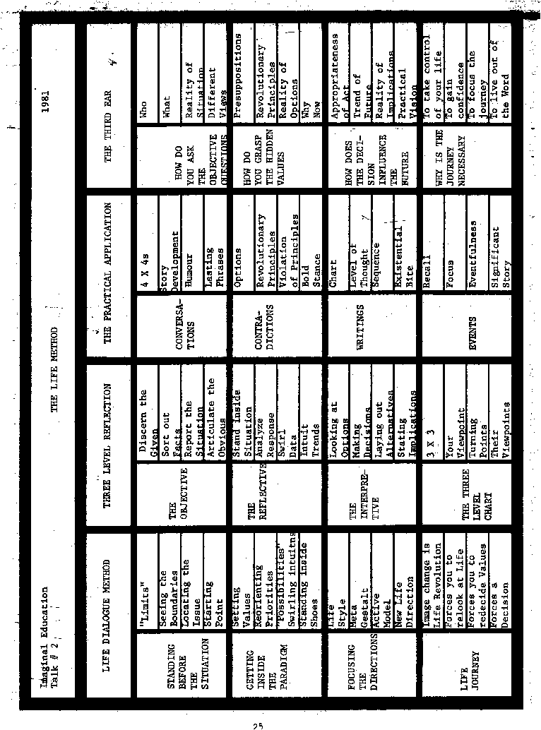 | RATIONAL OBJECTIVE: To practice the life method of reflection | EXISTENTIAL ADM: To see the possibility of reflecting indepth in any situation |
