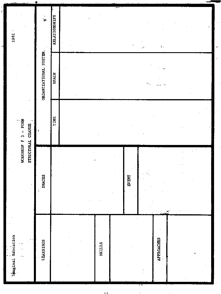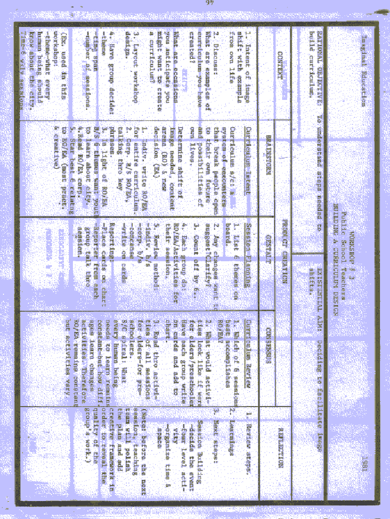 1. What did you notice in these timelines? 2. Where were you surprised? 3. Where do you discern similarities differences? 4. What seems on target relative to actually shifting operating images in the situations? Why? 5. How might this be a useful workshop to use with people in the work? place? 6. What is the new that has occurred to you relative to your task as a trainer? |
