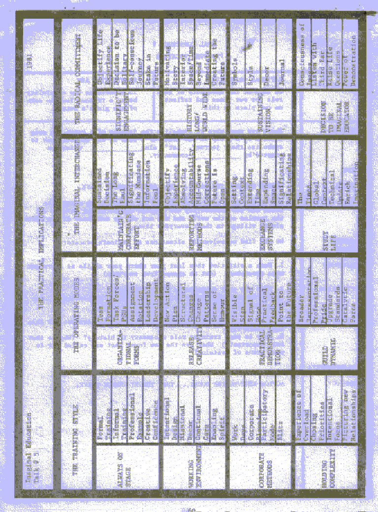 | RATIONAL OBJECTIVE: To create the tools for communicating image changing messages | EXISTENTIAL AIM: To experience the excitement of returning to .the job with image changing tools |
