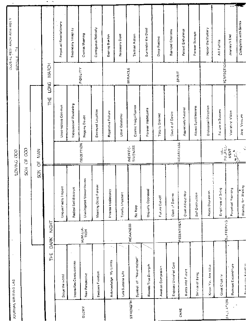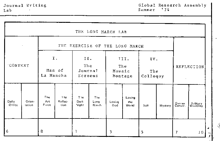 The exercises move us through grounding the qualities of the Dark Night and the Long Harch in our own lives, creating a mosaic montage on our care for the world, and engaging in colloquies with the Mystery.