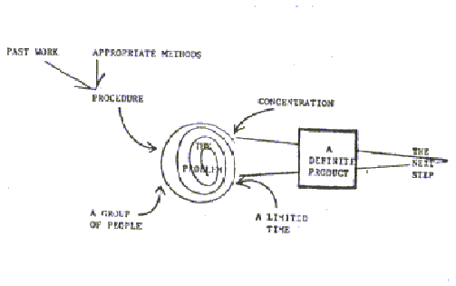 PROCEDURES FOR A PROBLEM SOLVING UNIT 1. State the problem. 2. Get a diverse group of people committed to work on it for a definite time (3 44 hours). 3. Look at what has been done in the past on this problem. 4. Describe the product you want at the end of this definite time. 5. Write procedures to get that product. They may include brainstorming, gestalting, small group work, plenary sessions, making charts, interviews, corporate writing, spinning, wild imaginings and role plays. |