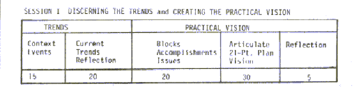 (list 45) 1) Use the New York Area Council Practical. In 11ght of the data just listed, how does the 21 Point Vision need to be modified? a) Individually, list the modifications. What needs more emphasis? Where does the focus need to be shifted? b) Divide into 45 groups create one modified vision by groups. 2) Consense on the Modified Practical Vision. a) One group put practical vision on the board