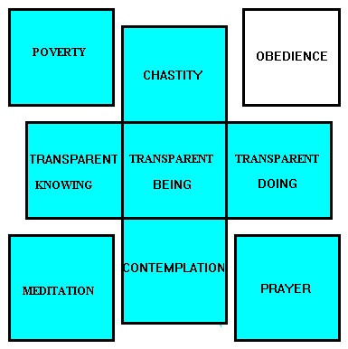 The intensification of the corporates pushes into the solitaries. The intensification of poverty in terms of the knowing pushes into meditation. The intensification of chastity in terms of being pushes the bottom out in terms of contemplation. And to push obedience through to the very bottom in terms of the doing of doing is to find yourself precisely at the point of prayer.