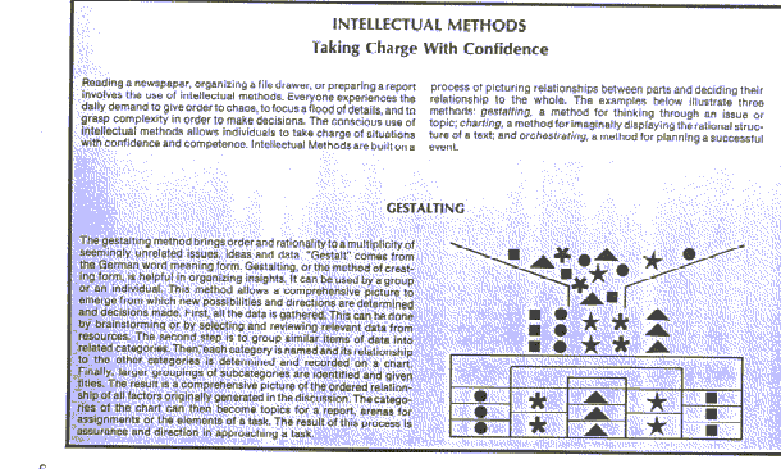 In this transition period, the residue from the scientific and economic dominance of the first half of the century has itself become a problem. "Welltrained" persons emerge from our educational institutions highly specialized, but without a way to understand and relate to the complex interrelationships of an interdependent world. Narrowly focused occupational training is inadequate. Individuals find themselves struggling with how to assimilate, organize, reflect upon and decide about quantities of data which daily assault them.