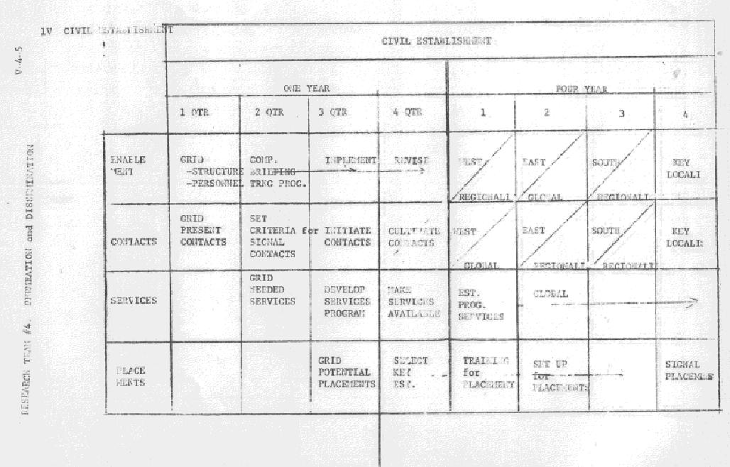 A third strategy for permeation of the Civil establishment is to place order/movement personnel in strategic positions. Which establishments, which positions within those establishments qualifications for order/movement placement in the structures the necessary briefing/training and the duration of the particular placement need to be worked out. The function of placement must be determined for each establishment; e.g. to gather data influence certain policies, or take control.