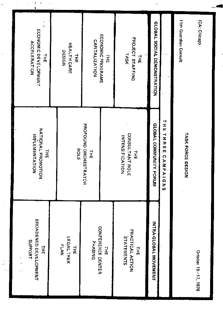 2. The Economic Programs Capitalization will design the plan for the catalytic, breakloose financing that will enable procurement of machinery and equipment for economic and agricultural intensification in human development. This task force will meet in the G.C.F. Post space.