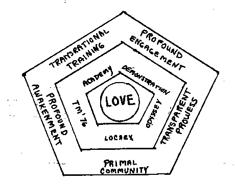 This is when hope appeareth. How do you find your way around this world' that is the other world, that is only present within this world? When I taught. at Colgate, we were still takking about the wellrounded man, but people were pointing to the moral level of life. No! When you push that to the profund£ty of the ontological, this pentagon is what it now means to round out your existence. When you walk around that pentagon and come back to primal community' then you know what primal community is.