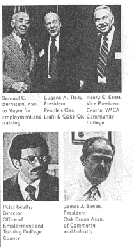 Now in its fifth year, Training, Inc. is enthusiastically supported by its sponsors in Oak Brook and Chicago: In Oak Brook, the DuPage County Employment and Training Office provides CETA operating funds; Central YMCA Community College is the training agency that implements the program; and the Oak Brook Association of Commerce and Industry is the group of cooperating business firms that advise and support the program and hire its graduates. In Chicago, this program is supported by the Mayor's Office of Employment and Training, the Central YMCA Community College and Chicago United, a consortium of leading black, white and Latino business and professional people.