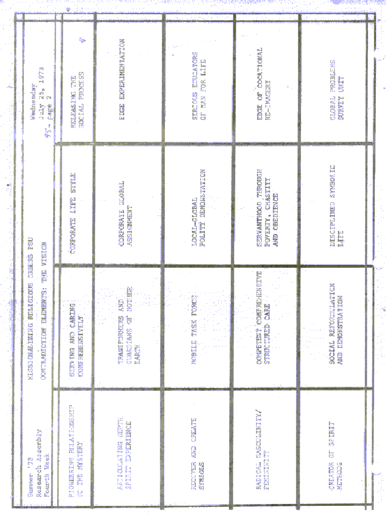 | Summer '73 MISSIONALIZING RELIGIOUS ORDERS PSU Wednesday